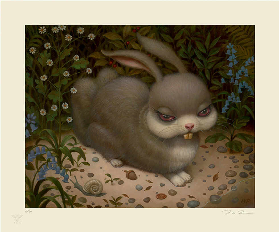 "Wabbit", by Marion Peck, is a limited edition, signed and numbered giclee print on archival paper. The print is being sold unframed, includes a certificate of authenticity, and is published by Porterhouse Fine Art Editions.